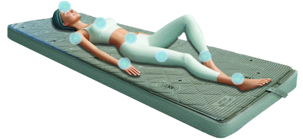 - Trasforma il calore corporeo in raggi FIR, consentendogli di svolgere il loro effetto benefico proprio quando il nostro corpo è immune dall’elettrosmog.